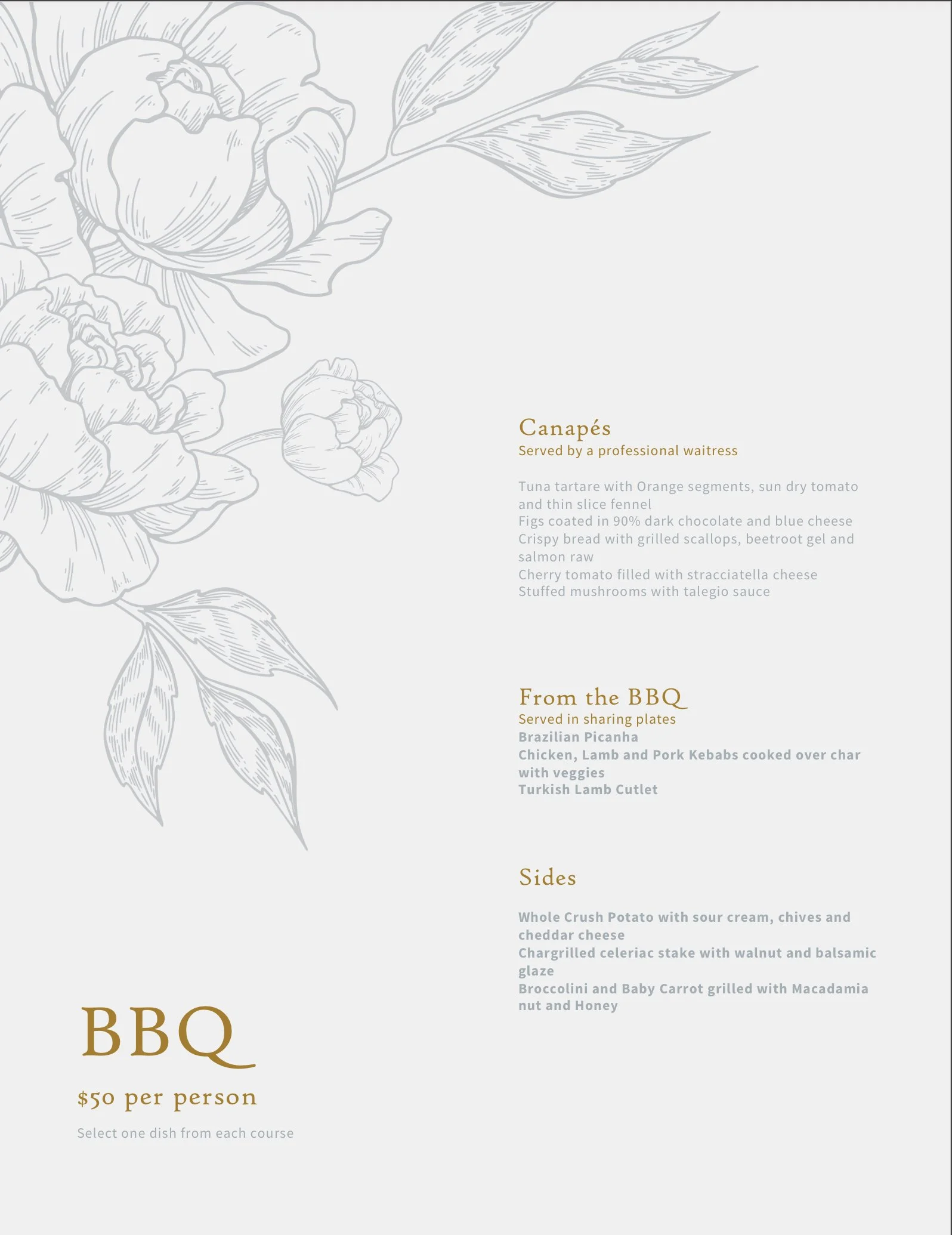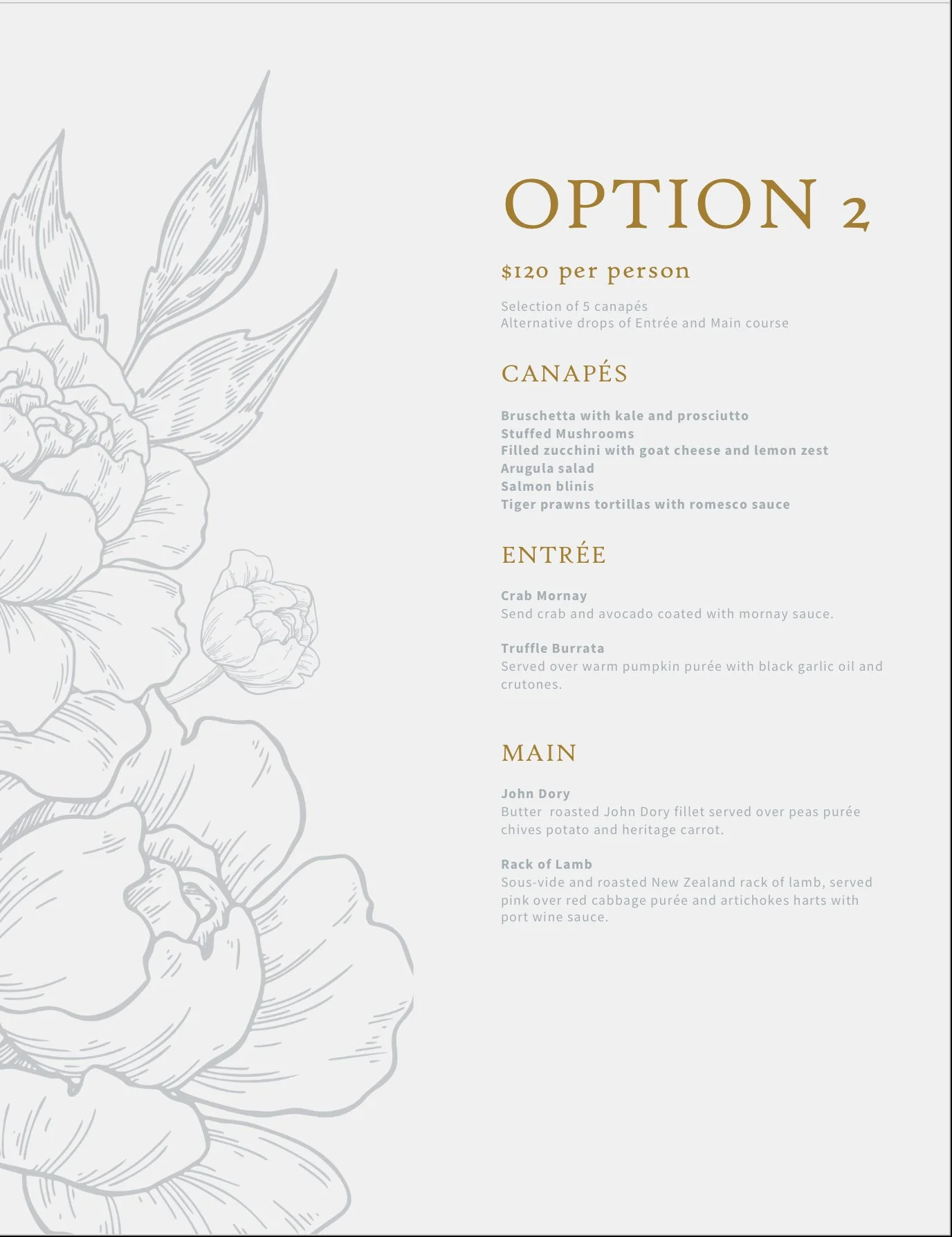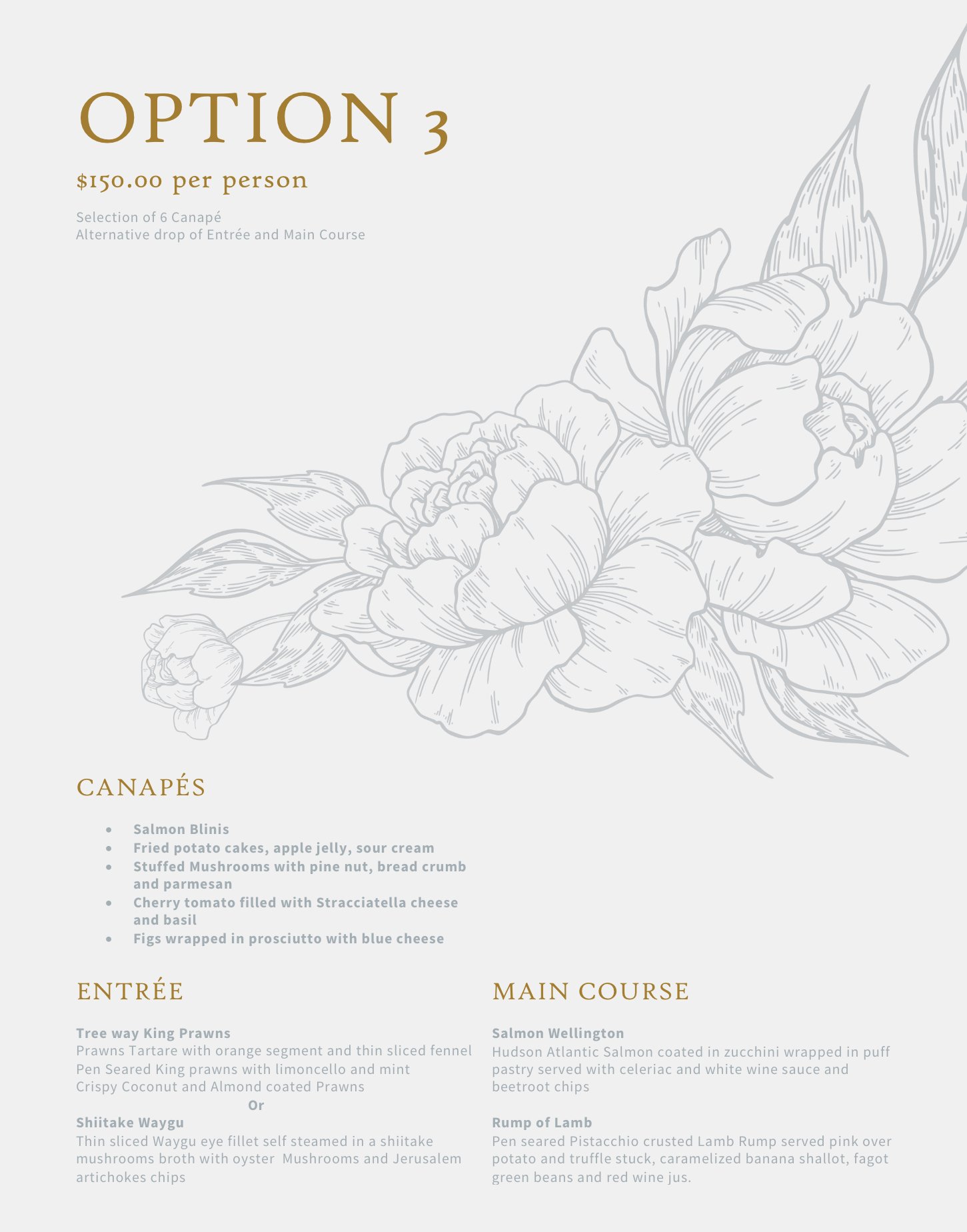 You can choose from our menus or have a meeting with the chef and create your unique signature menu.